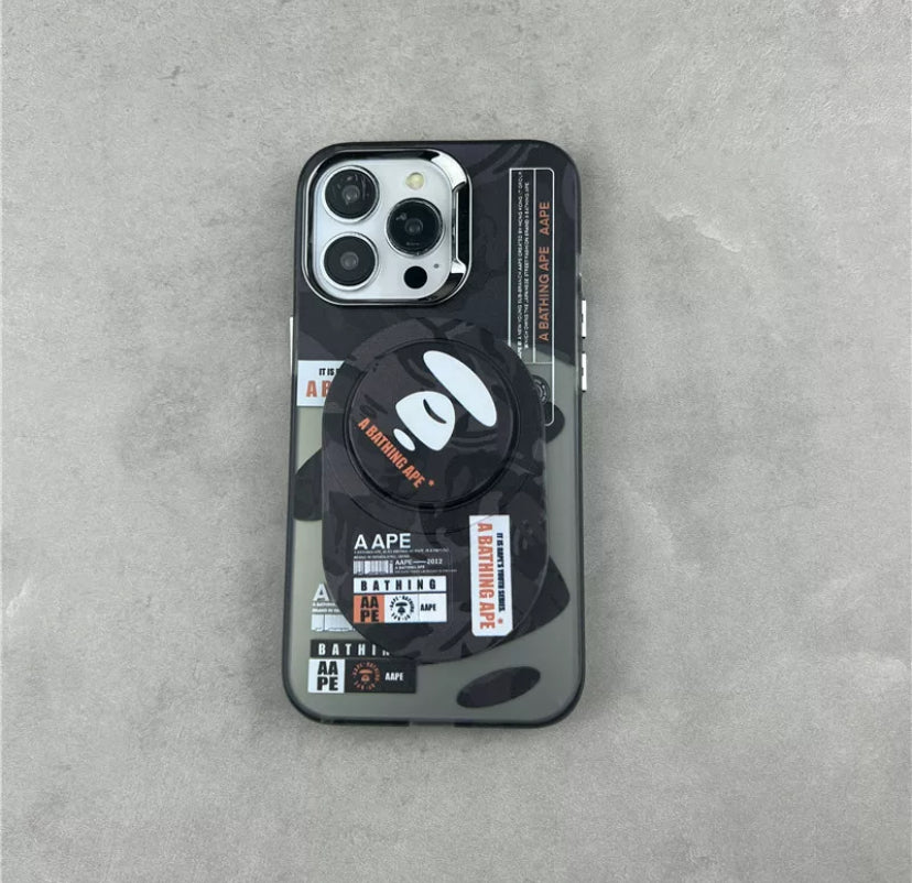 Upgrade your phone with this Bape-inspired streetwear case, designed for style, protection, and convenience. With MagSafe compatibility and a removable grip, you get the best of both worlds—effortless charging and a secure hold when you need it.