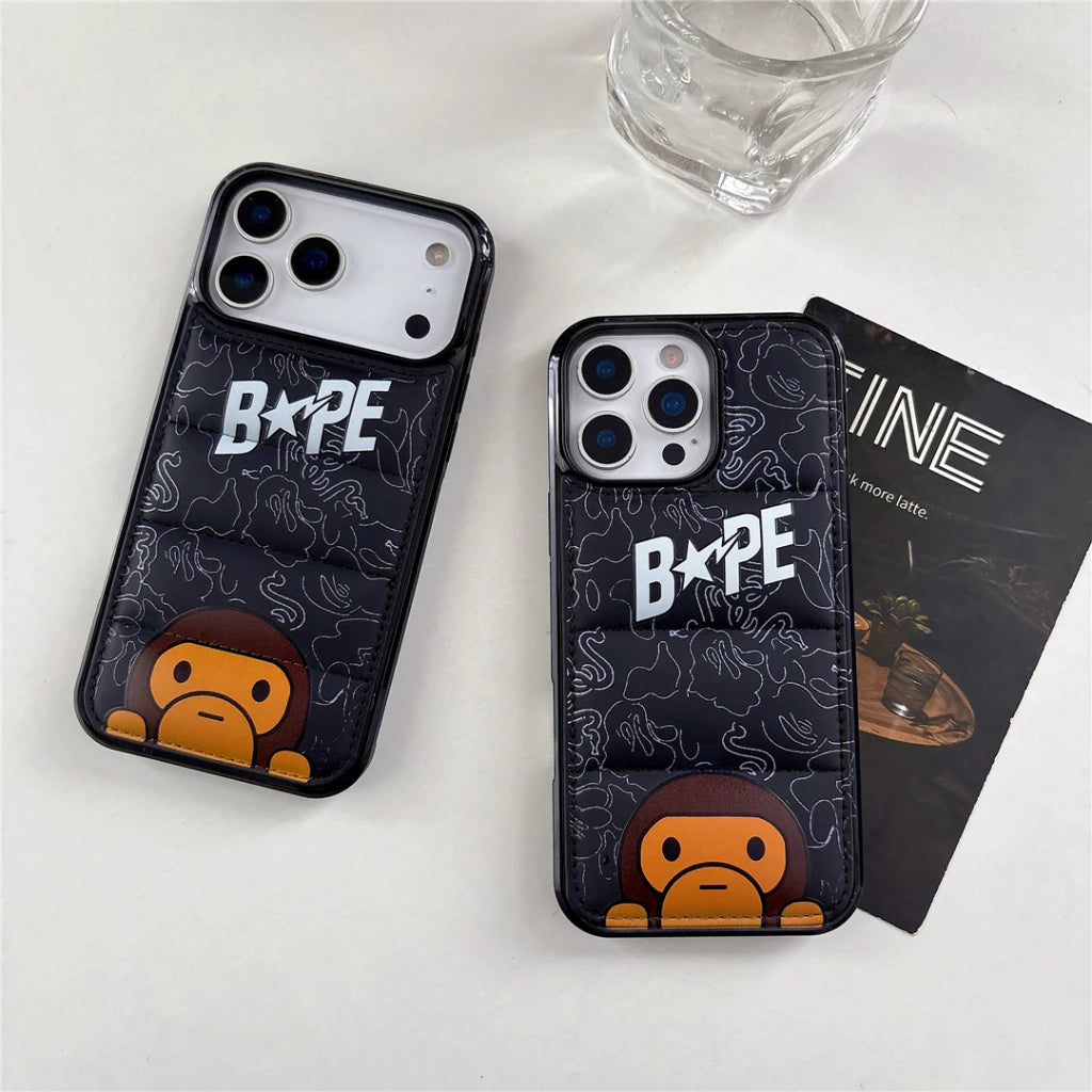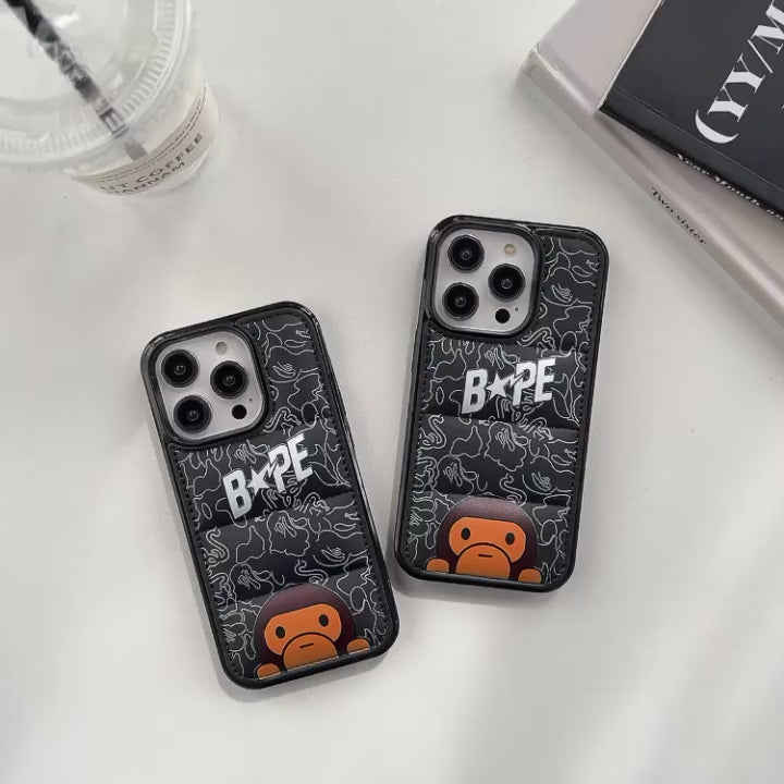 Bring some hype to your pocket with the baby milo inspired puffer case – the perfect mix of streetwear culture and everyday protection. Featuring the iconic ape mascot and bold logo on a padded puffer-style back, this case doesn’t just protect your iPhone… it dresses it.