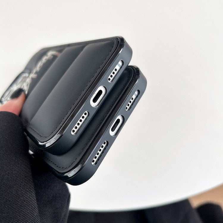 Elevate your phone game with the Black & Silver Puffer iPhone Case, inspired by iconic streetwear style. Designed with a sleek, quilted look and soft filling, this case blends fashion with function, giving your phone next-level protection against drops and scratches.