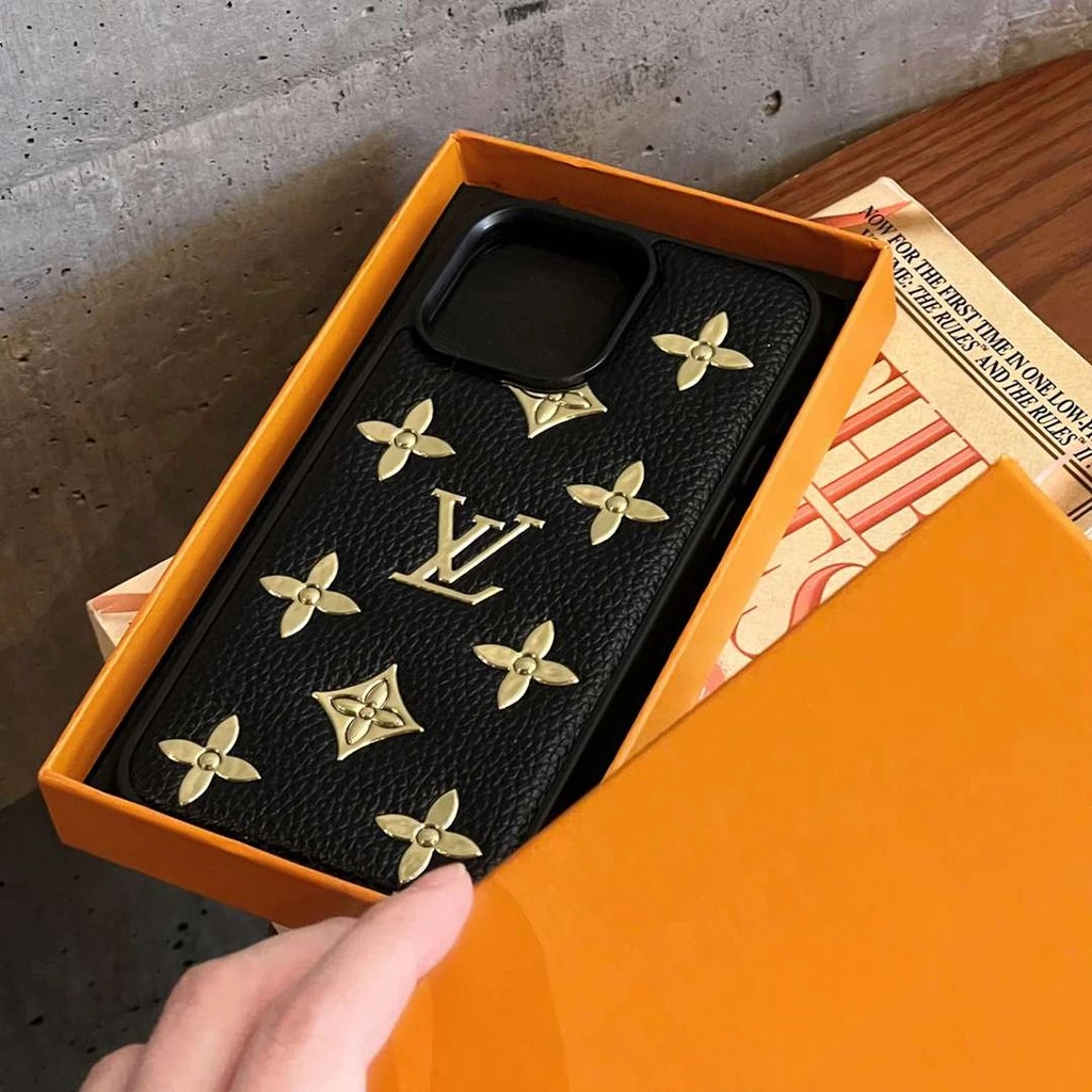Turn your phone into a statement piece with this luxe studded monogram case, finished in textured leather-look material and topped with glossy gold-tone emblems. The raised details catch the light beautifully while the soft-touch inner layer helps cushion your phone from everyday bumps and knocks.