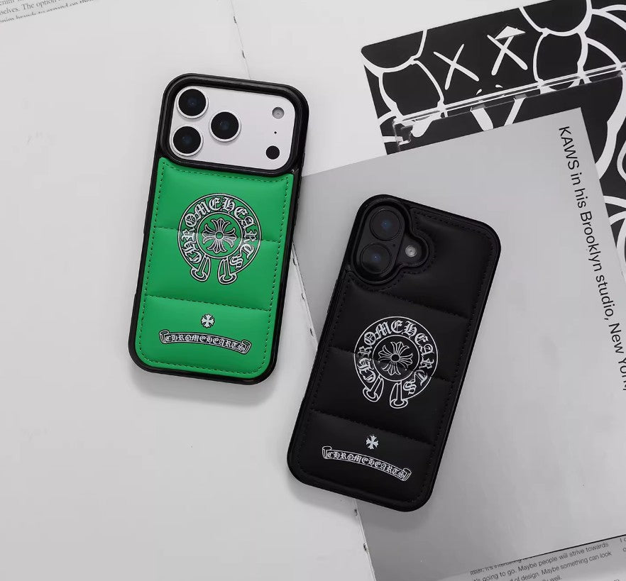 Turn your phone into a streetwear statement. This quilted puffer-style case features a bold gothic emblem design with a padded, premium feel — made to stand out while keeping your phone protected.