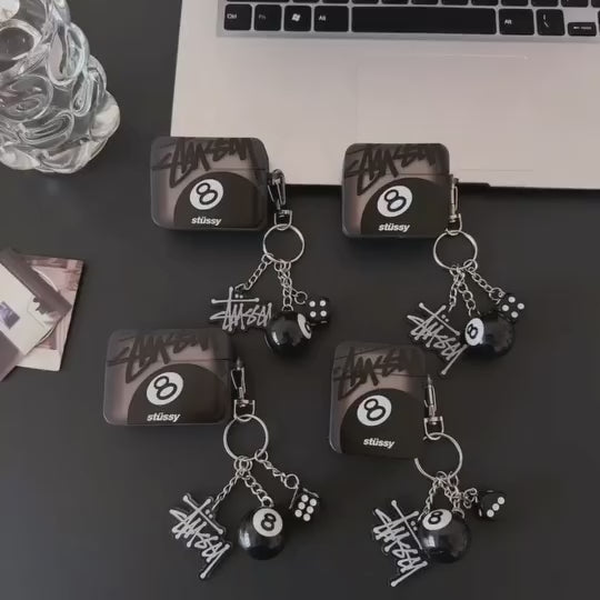 Drip meets function with this must-have AirPods case, designed for those who live and breathe streetwear culture. Featuring a bold Stussy-style logo, secure press closure, and a detachable charm with a logo tag, dice, and eight-ball, this case is the ultimate flex for your everyday carry.