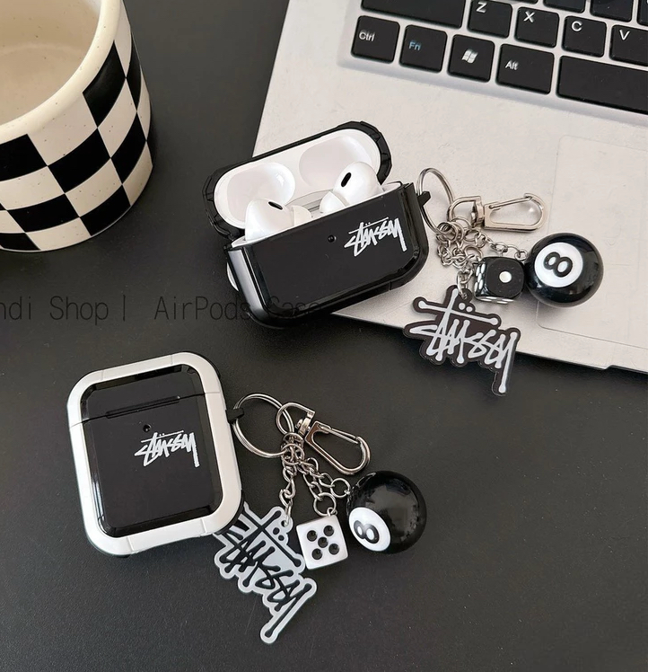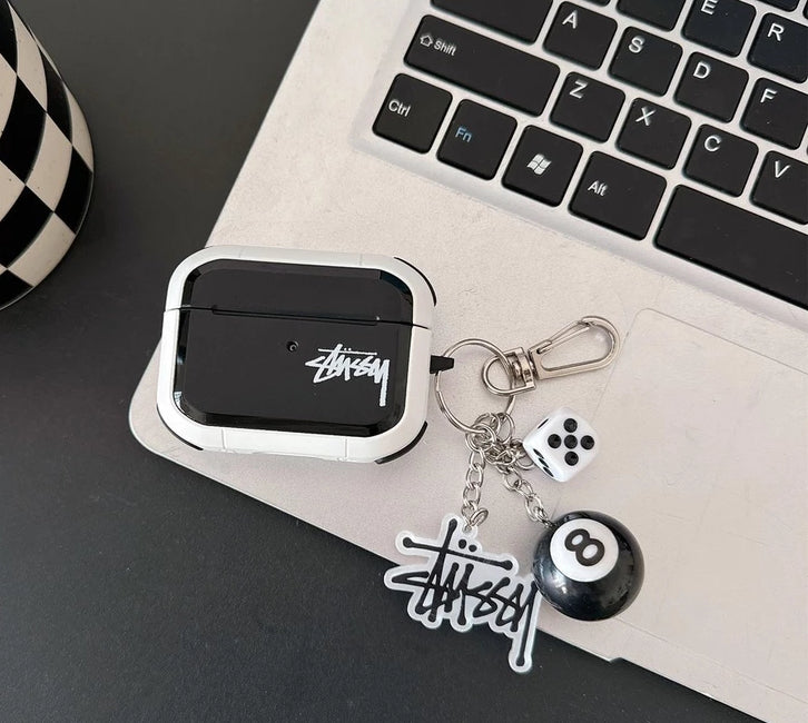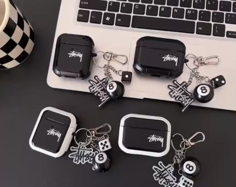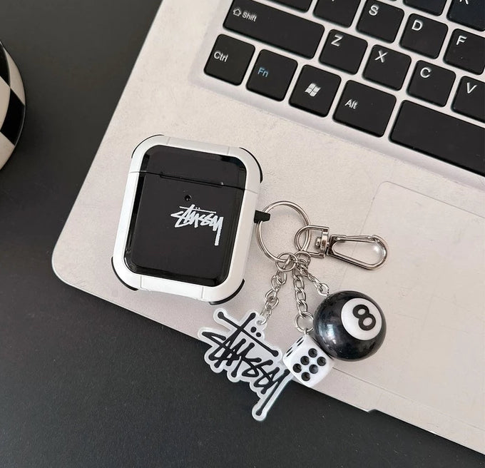 Upgrade your AirPods game with this sleek black and white streetwear case, featuring an iconic Stussy-style logo and a durable press-to-open closure for easy access. Designed for both style and protection, this case keeps your earbuds safe while adding a touch of urban edge to your everyday essentials.